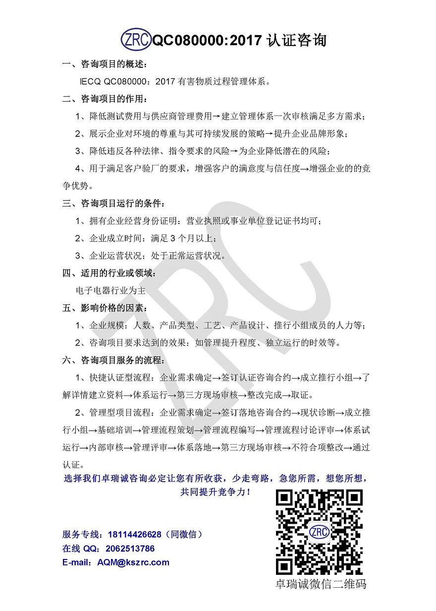 IECQ QC080000:2017认证咨询